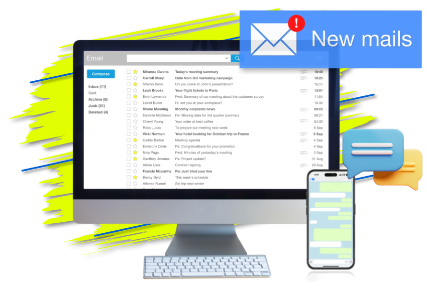 Each text and email you send or receive incurs a small cost. Tiny costs that add up only when you use them so you won’t have to pay expensive monthly fees for texting and email services that you don’t fully use.